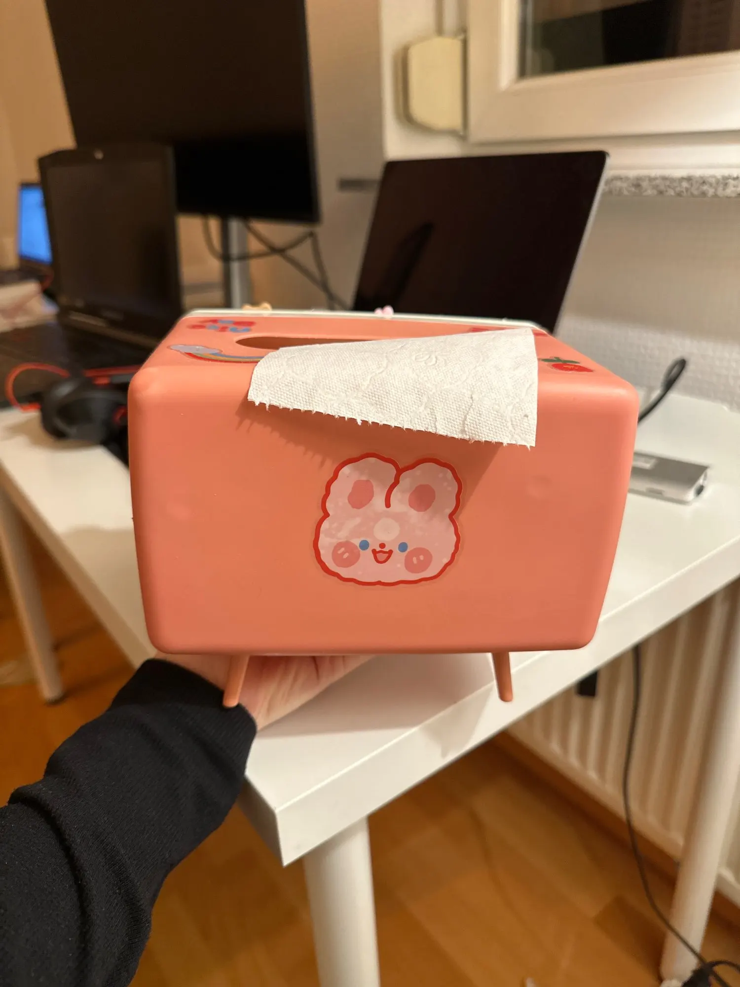 Multifunctional tissue box with built-in phone holder for stability and convenience. Fits phones up to 6.5inches.