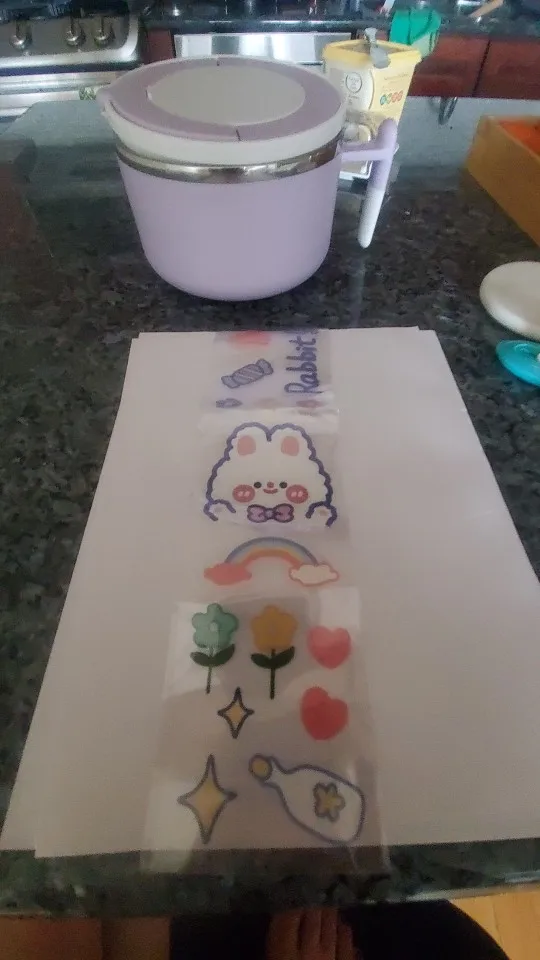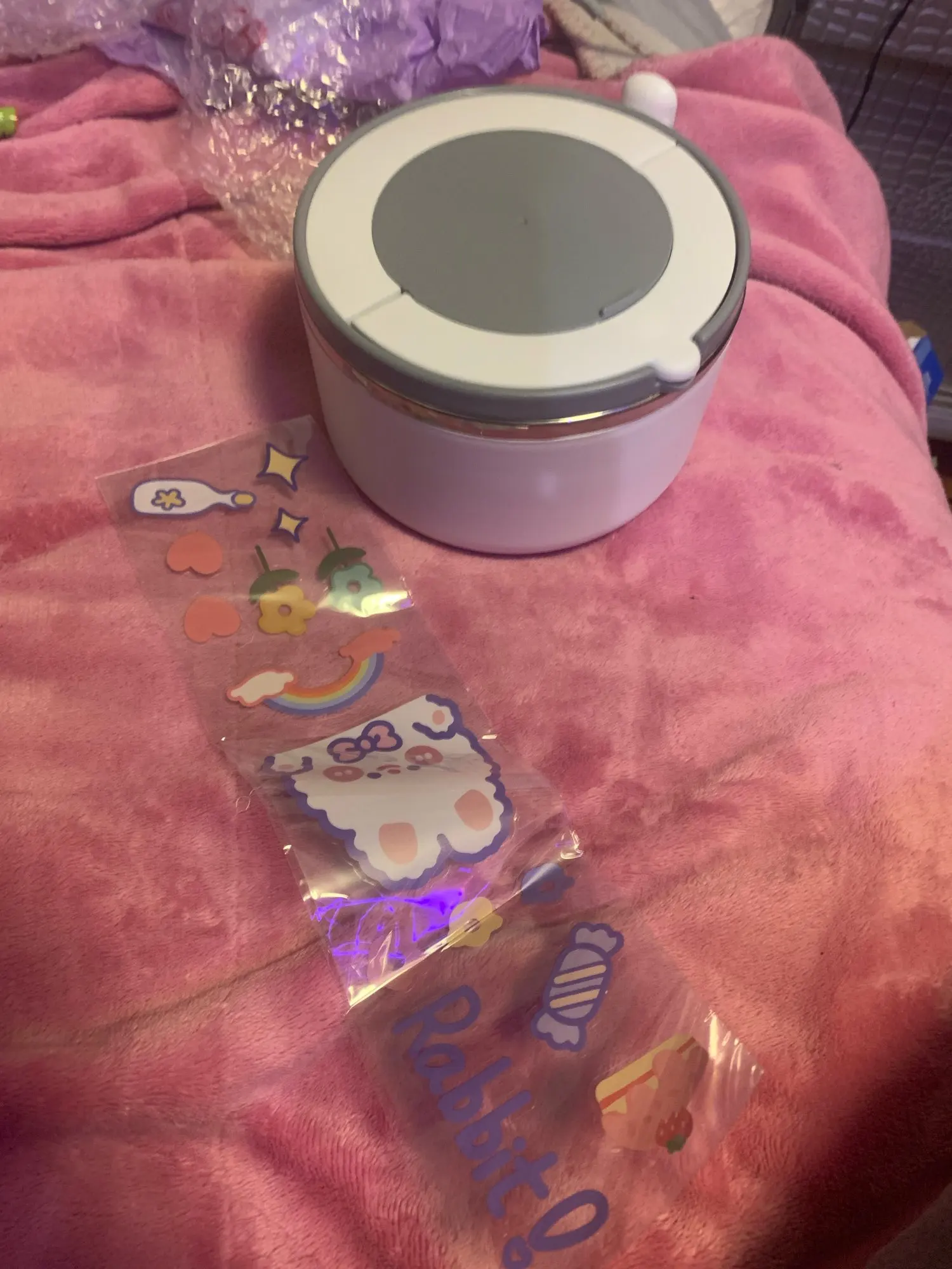 Just as described with the stickers. A little dusty but packaged well. Nothing was damaged on arrive which is wonderful. It is metal on the inside so it is not microwave safe.