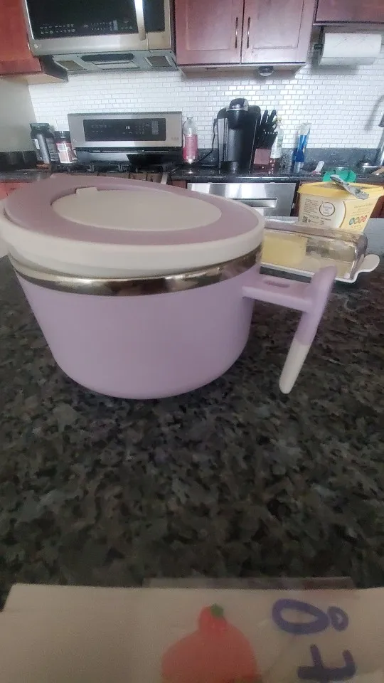 It look exactly like the pictures! I was worried it might be too small but it's pretty big! for reference, it's slightly smaller than an average bowl and you can cook about two packets of ramen in it. the top is plastic so make sure your food is not too hot when closing lid.